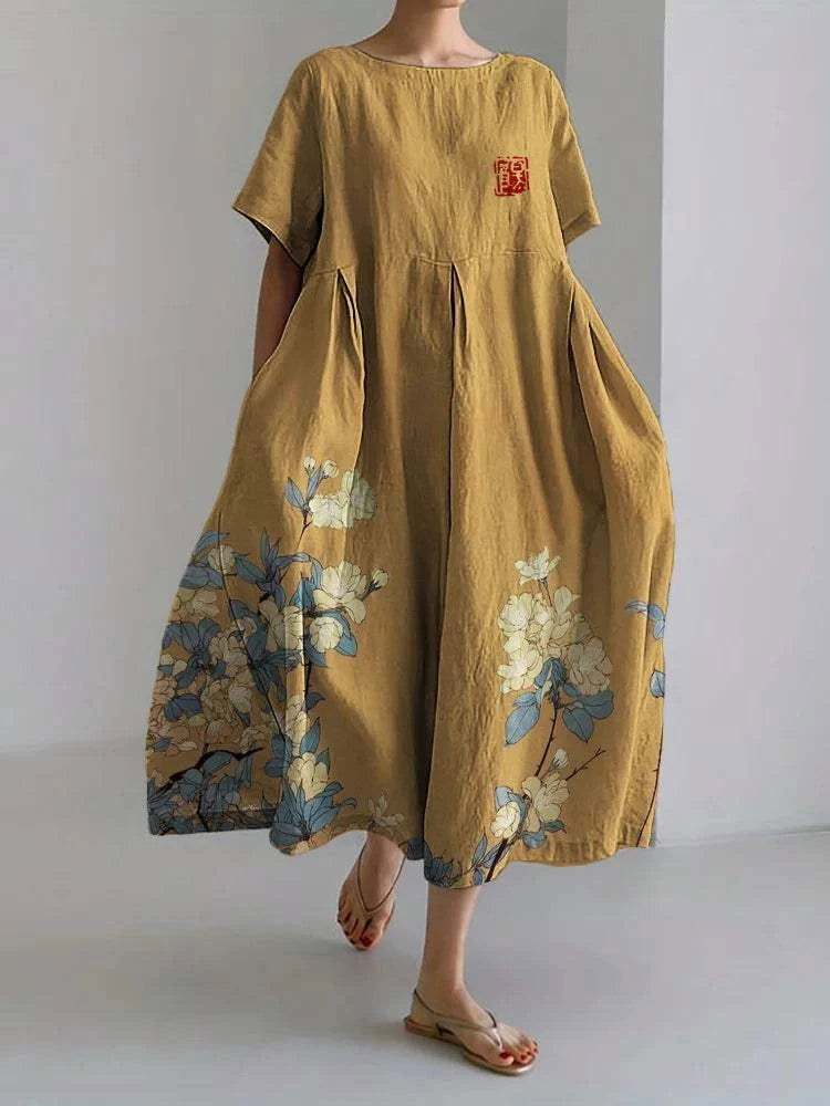 Inspired by the elegance of Japanese florals, this maxi dress blends simplicity with refined beauty. Light, flowing, and effortlessly graceful, it’s the perfect choice for both everyday wear and special moments.